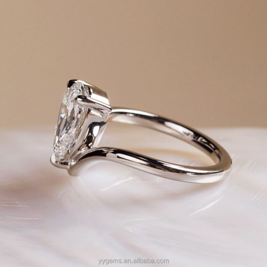 Nom:Bague de fiançailles en Moissanite poire PT950, 4.0CT, bijoux fins