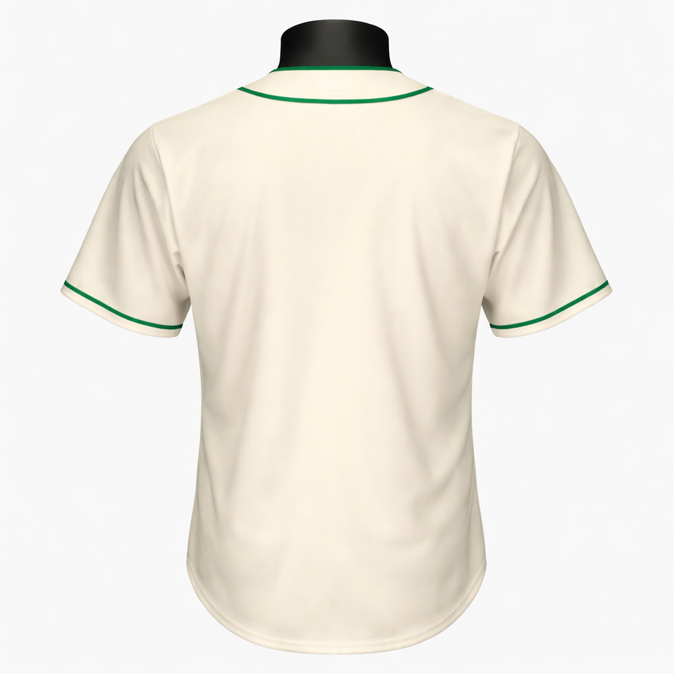 Maillot de baseball personnalisé avec crème sur le devant, chemise de baseball entièrement boutonnée, bordure verte, uniforme d'équipe, haut respirant et à séchage rapide