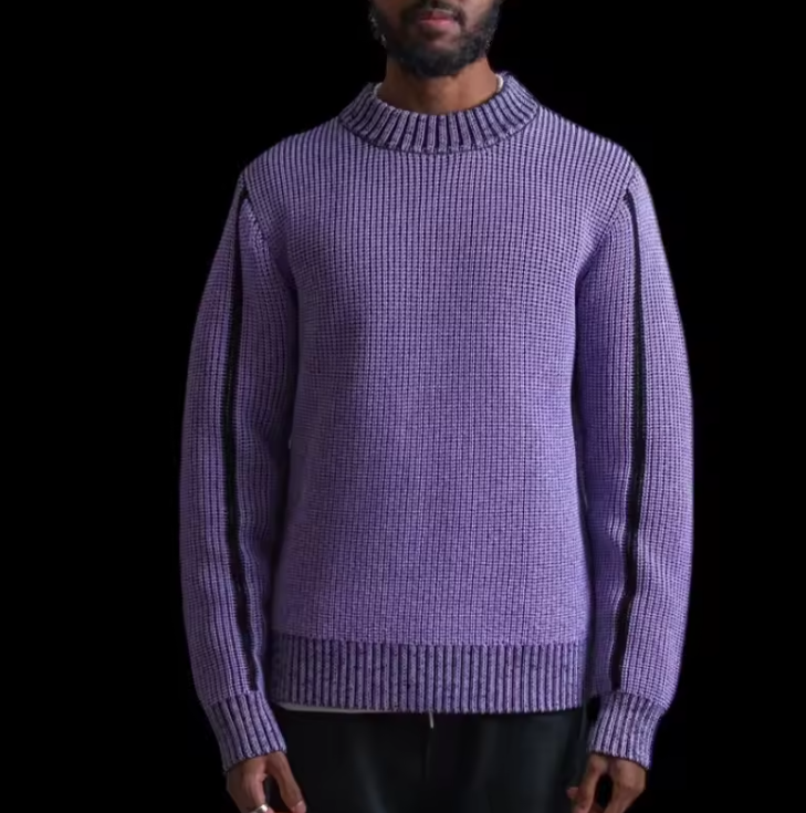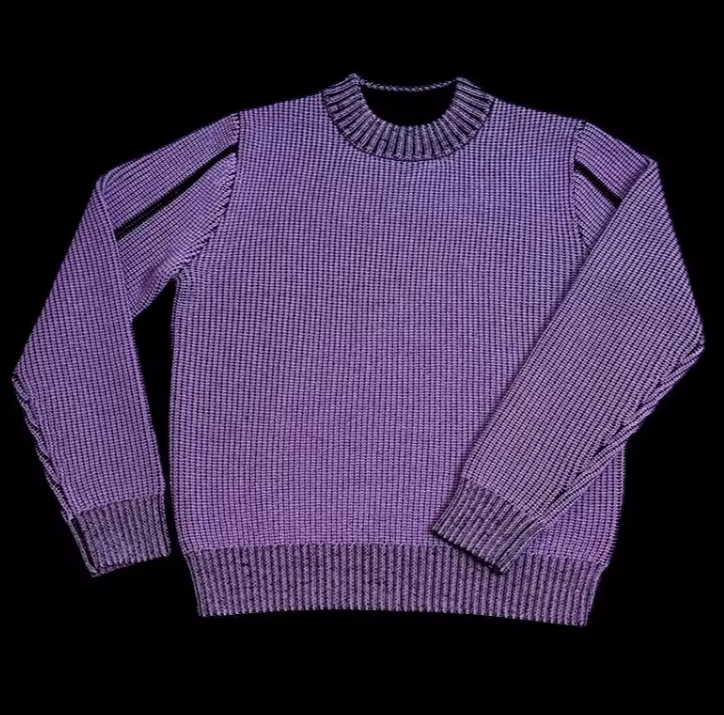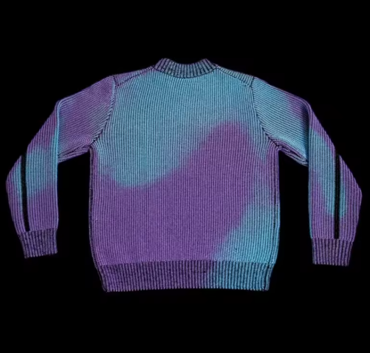 Pull à col rond personnalisé en fil sensible à la couleur changeant de couleur thermochromique tricot réactif pour homme INFRA PURPLE CYAN RÉACTIF À LA CHALEUR