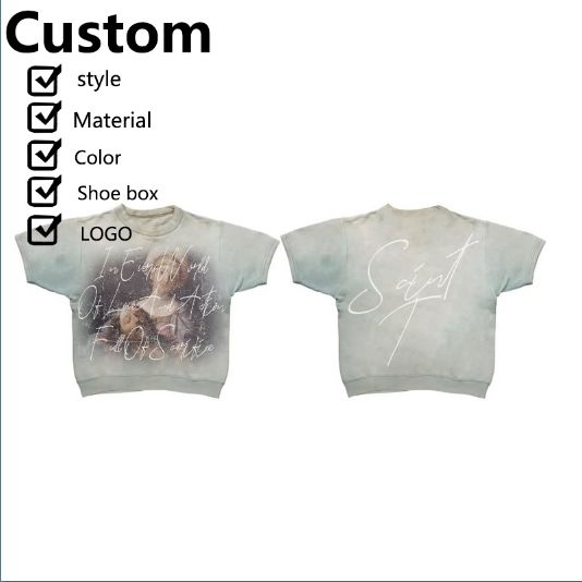 T-shirts Homme Coupe Boxy Personnalisée Effet Délavé au Soleil en Tissu Lourd