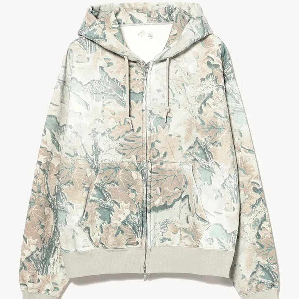 Sweat à capuche zippé pour homme, coupe boxy personnalisée, hiver, oversize, avec double fermeture éclair, 100% coton camouflage, streetwear