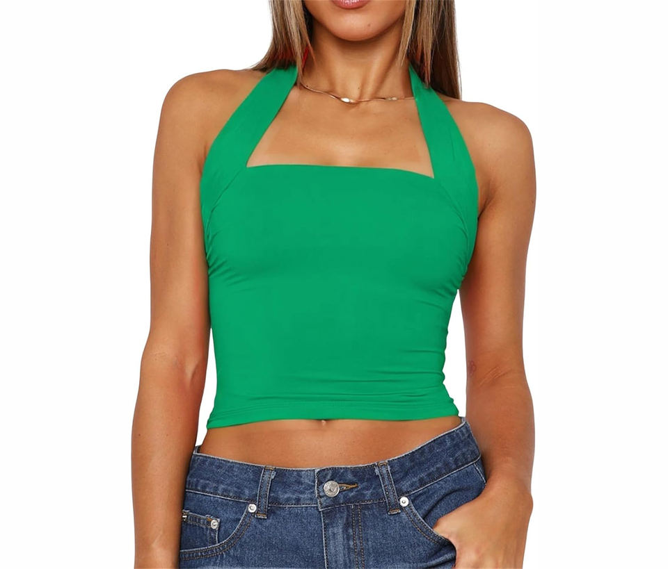 Personnalisé recadrée Licou femmes solide licou haut court sérigraphie plaine Streetwear licou femmes haut court