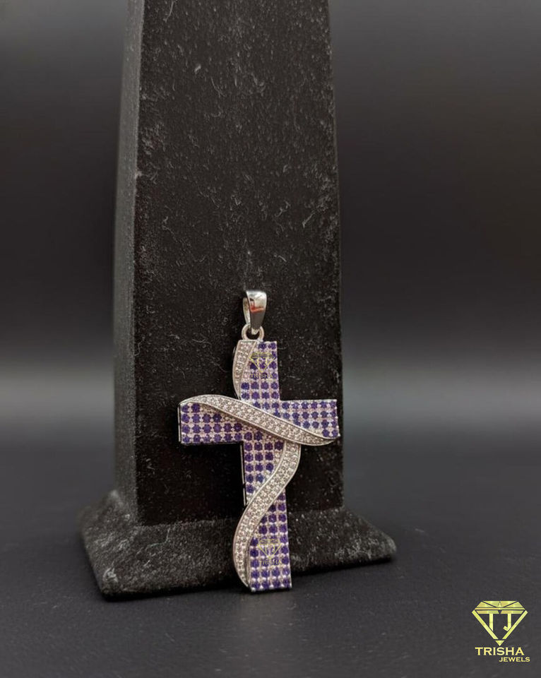 Pendentif croix personnalisé avec pierres bleues, diamants de laboratoire VVS, argent sterling 925, bijoux hip hop pour hommes