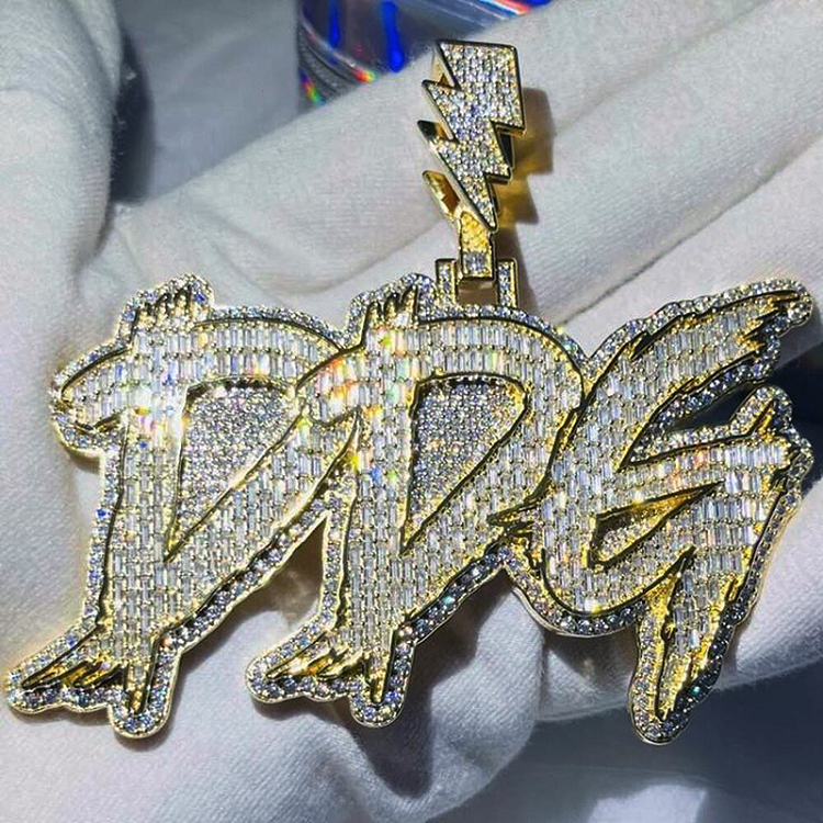 Pendentif Personnalisé Lettre Initiale Couronne en Argent Sterling 925 Micro Sertissage Moissanite Glacée, Collier Hip Hop Homme Tendance avec Breloque
