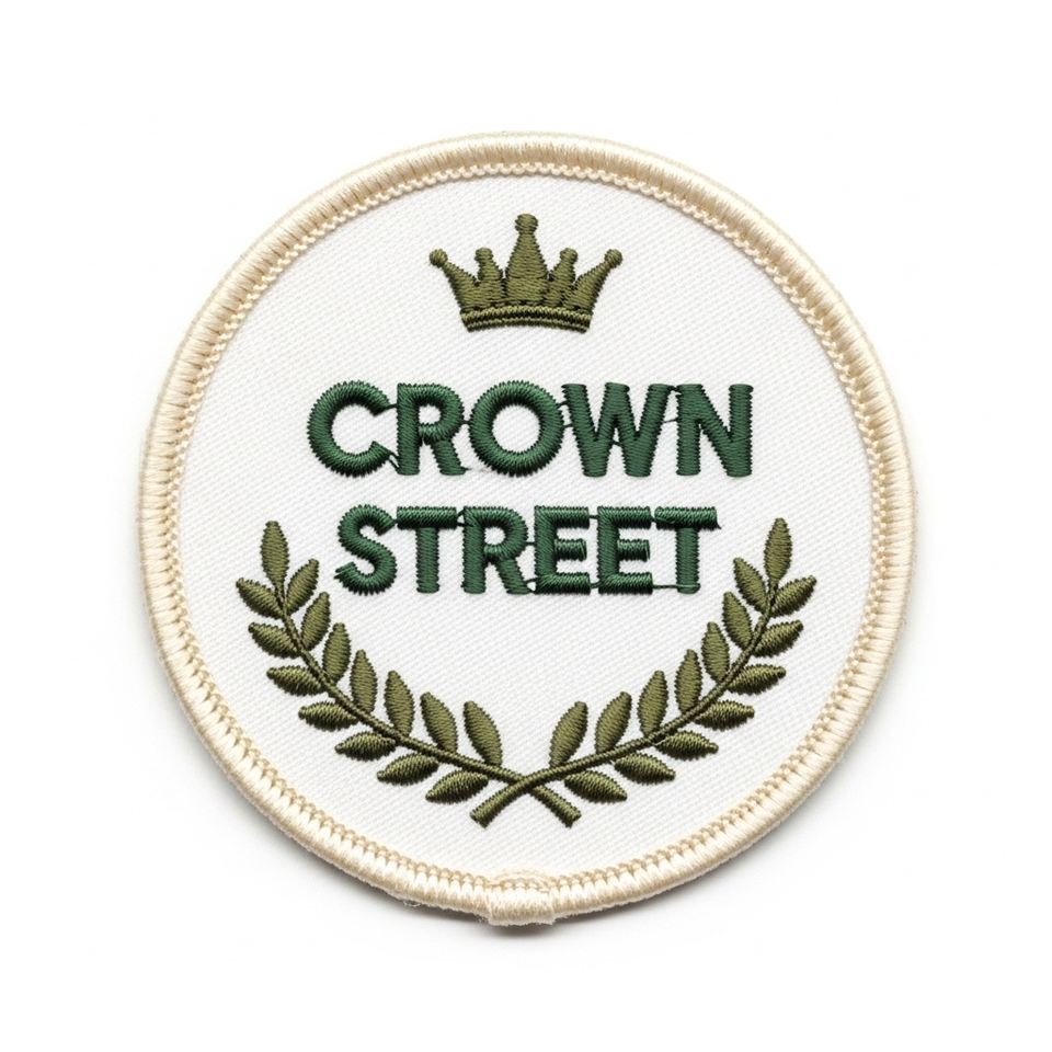 Patch brodé personnalisé Crown Street, thermocollant, avec logo couronne de lauriers de luxe, pour uniformes, vestes, chapeaux, badges à coudre, en gros