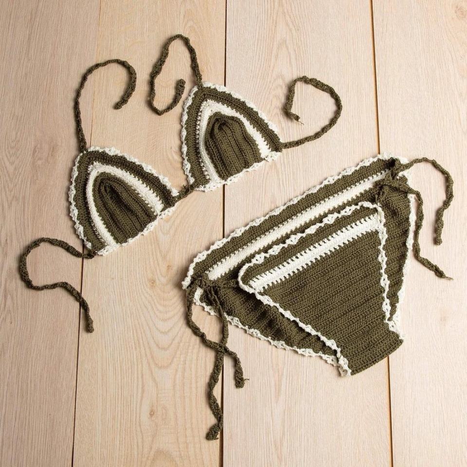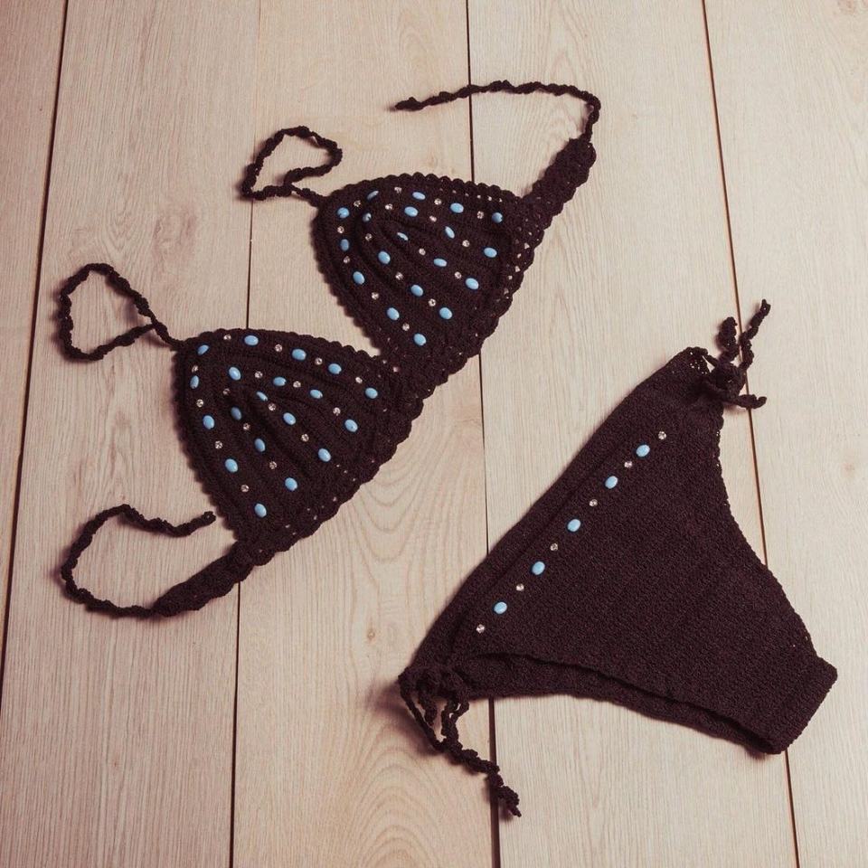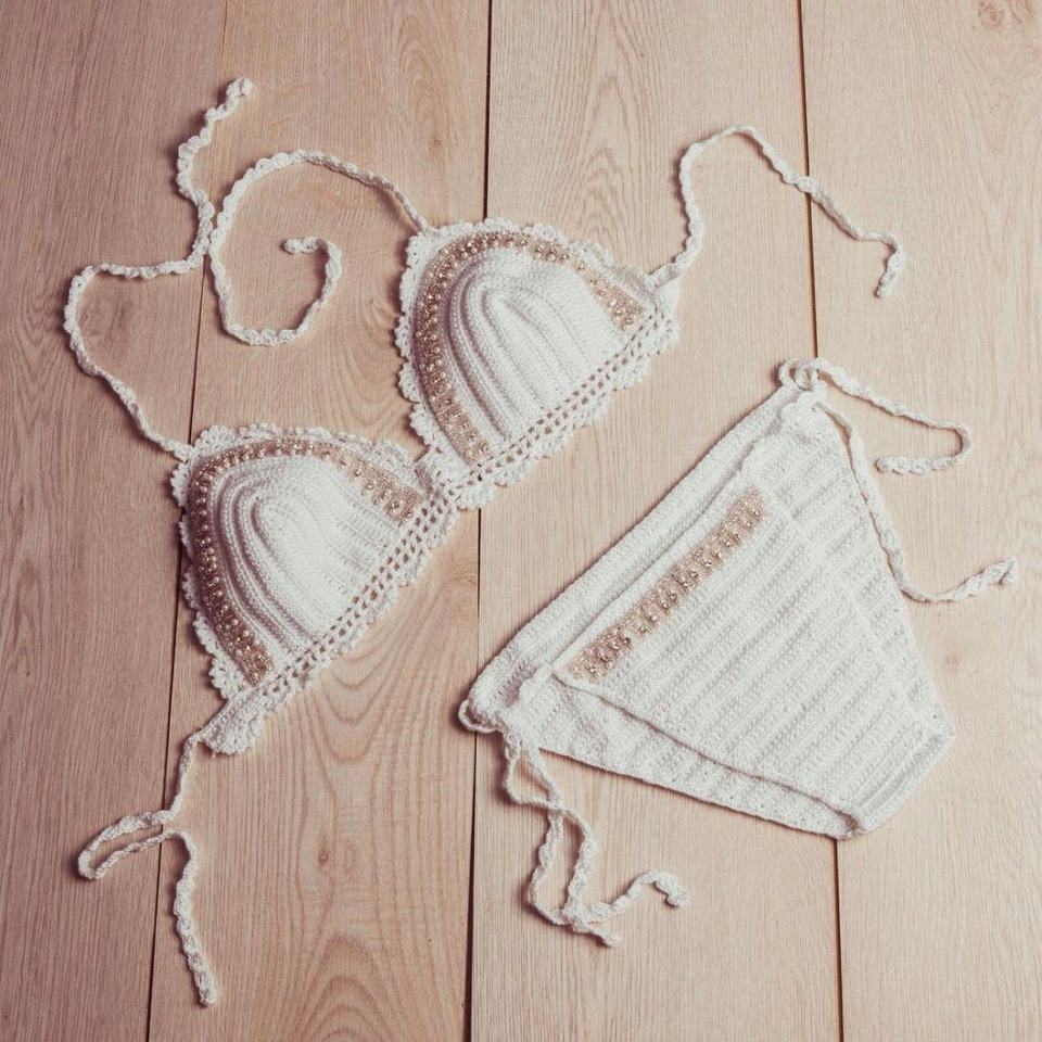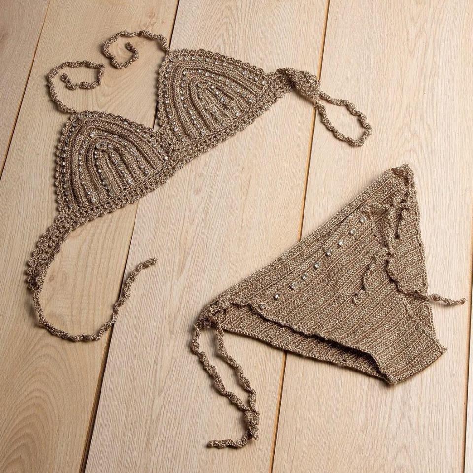 Bikini en crochet fait main avec perles de cristal brillantes, ensemble 2 pièces, maillot de bain string, vêtements de plage pour femmes