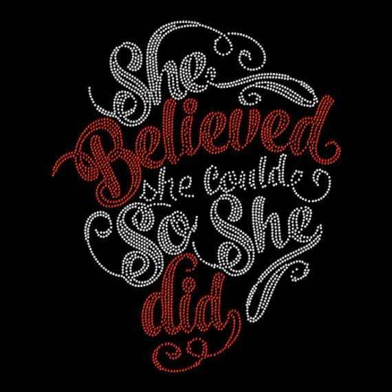 Appliques thermocollantes religieuses personnalisées en strass de cristal, motif « Elle croyait qu'elle pouvait, alors elle l'a fait », 12 facettes, thermocollantes