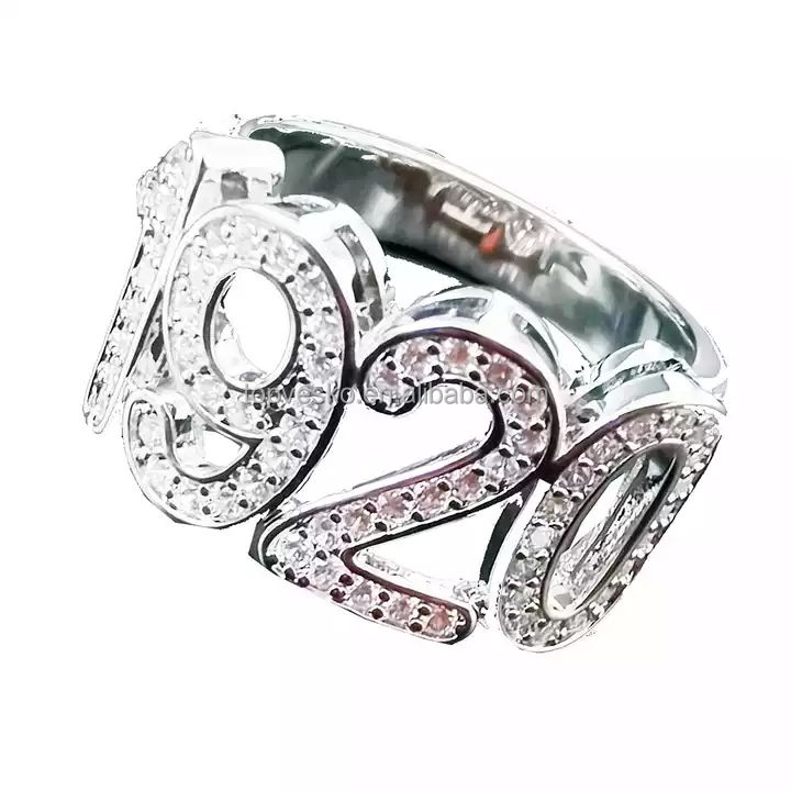 Personnalisé Cubique 925 Argent Sterling Plaqué Zircon Sororité Grecque Zeta Phi Beta Cristal 1920 Bague Amoureux Cadeaux Bijoux