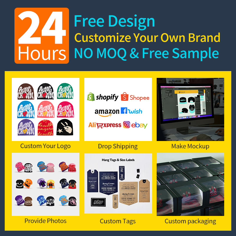 Bonnets personnalisés chauds chapeaux casquettes partout logo crâne d'hiver bonnet jacquard tricoté imprimé en gros