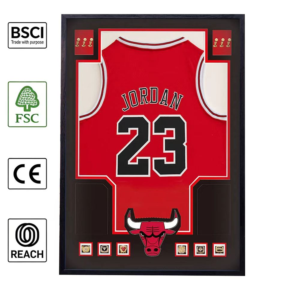 Cadre en bois massif personnalisé pour maillot de football, basketball, NBA, collection commémorative, avec signature Ronaldo, pour maillot de football ou de basketball.