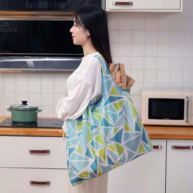 Sac fourre-tout pliable personnalisé en polyester écologique, avec logo imprimé sur écran, réutilisable pour la publicité promotionnelle