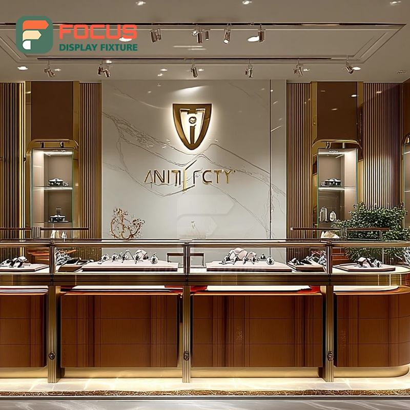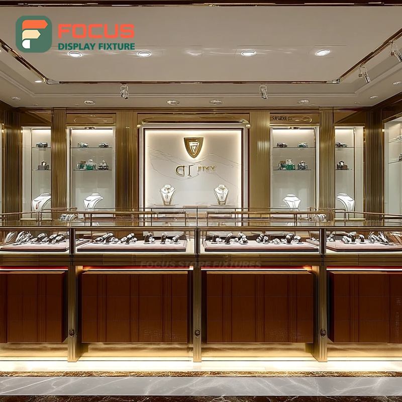 Fabricant de vitrines à bijoux sur mesure, surface polie, armoire à bijoux pour magasin de marque