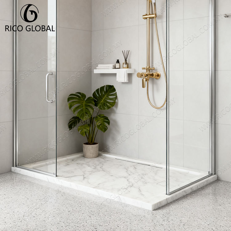 Plateau de douche en marbre de style moderne sur mesure, en acier inoxydable et en pierre artificielle pour salles de douche commerciales
