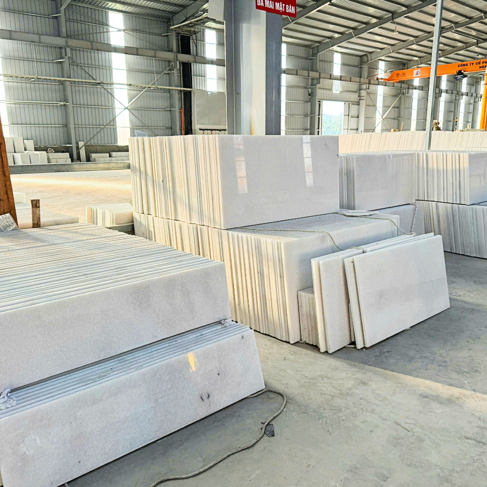 Marbre blanc pur découpé sur mesure pour projets de sols commerciaux et escaliers décoratifs, exportation Vietnam