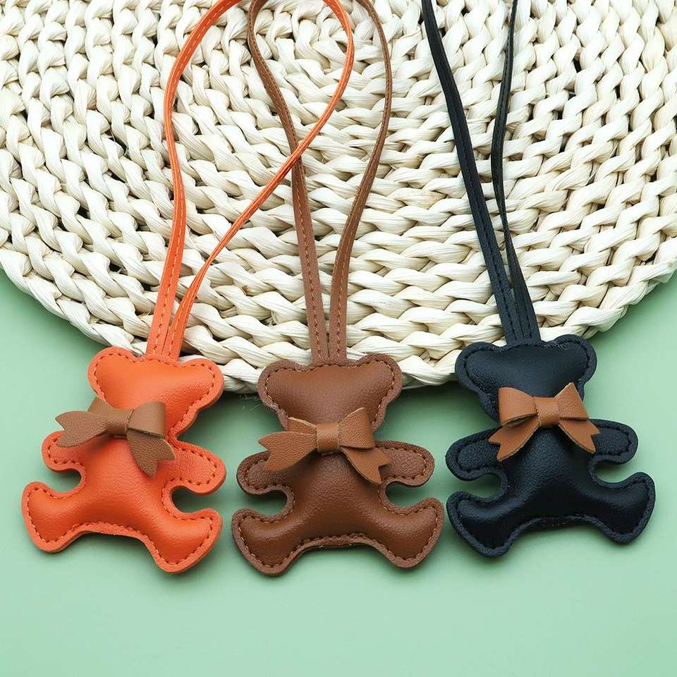 Porte-clés personnalisé en métal avec ours mignon, breloque de sac en cuir PU, animal de dessin animé, accessoire promotionnel pour peluches.