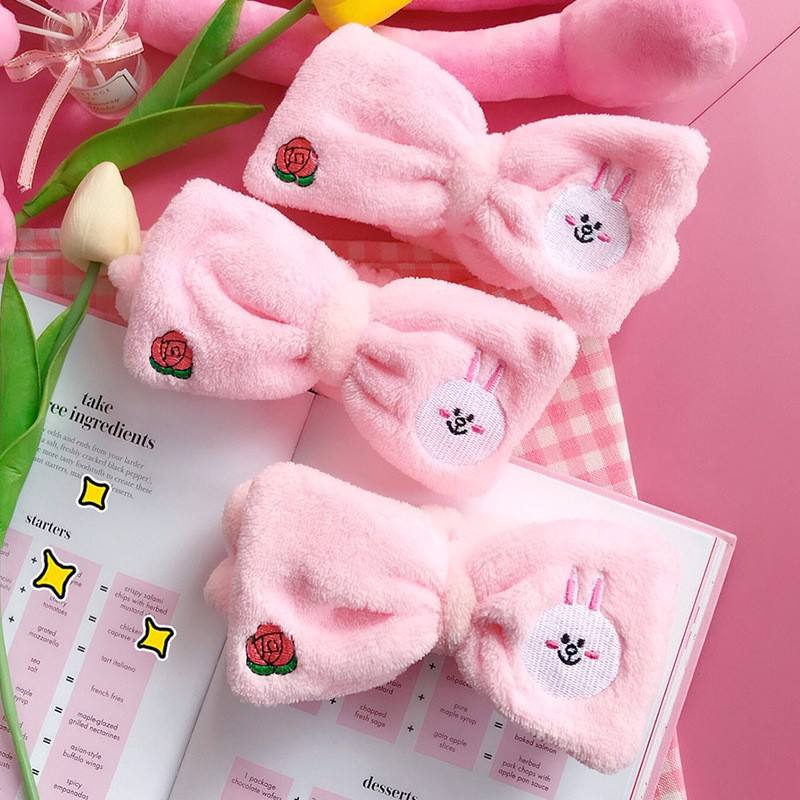 Bandeau de Douche Élastique Brodé Personnalisé Animaux Mignons Dessin Animé en Polaire Flanelle avec Nœud, Bandeau Masque Soin des Cheveux Spa