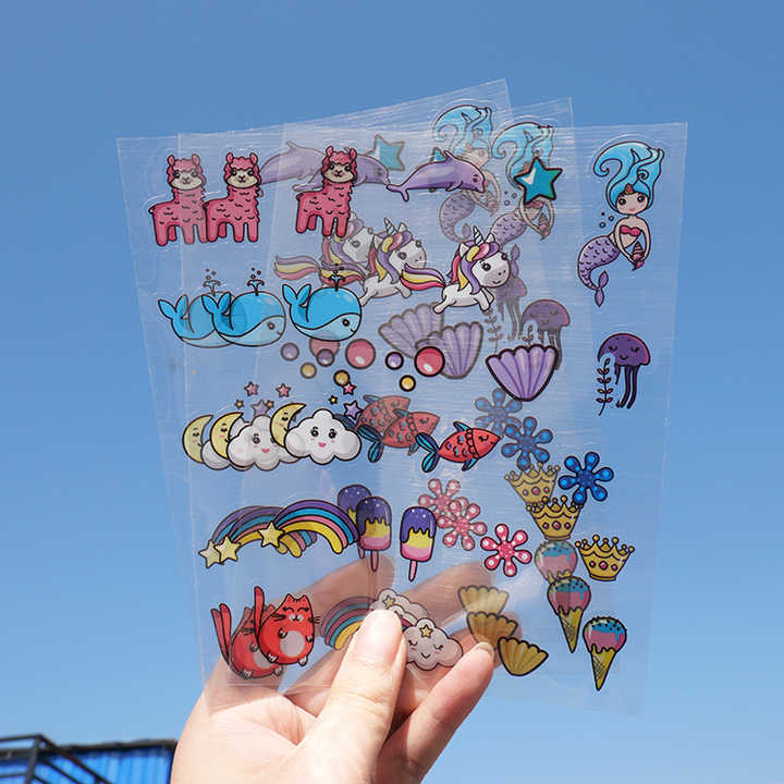 Feuille d'autocollants transparents en PVC personnalisés, mignons, dessin animé, soleil, nuage, arc-en-ciel, imperméables, décoratifs, autocollants transparents imperméables