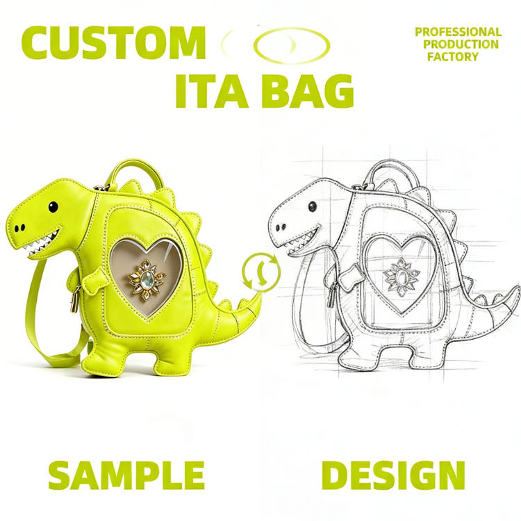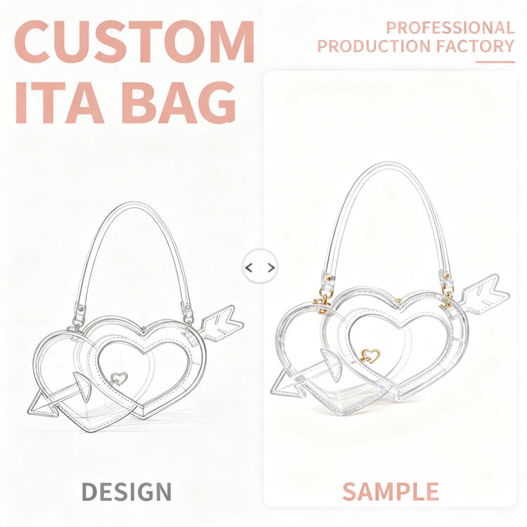 Sac à dos mini en cuir PU personnalisé, mignon, style Ita Bag, en forme de cœur avec fenêtre transparente, design Kawaii avec porte-gobelet, pour l'affichage de badges Anime