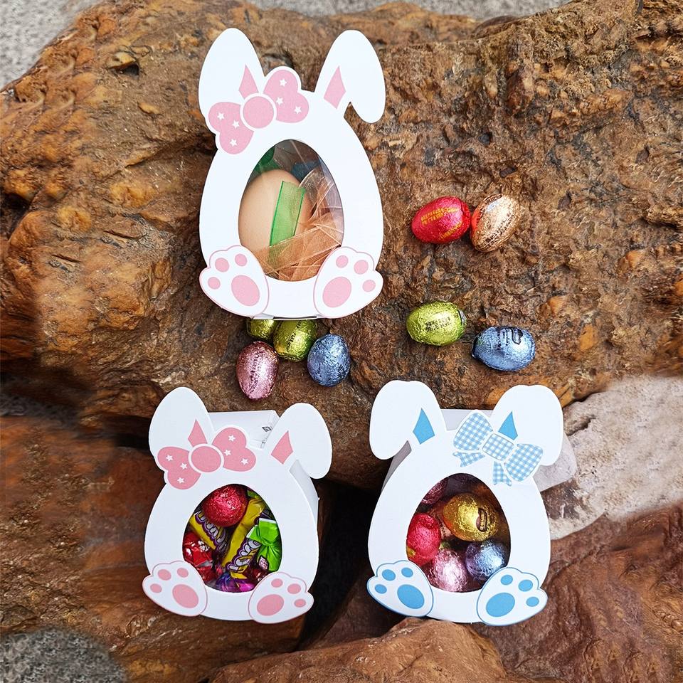 Boîte à bonbons personnalisée en forme de lapin de Pâques mignon Oeufs Décor Lapin Cadeau Emballage en chocolat Boîtes en papier avec fenêtre transparente