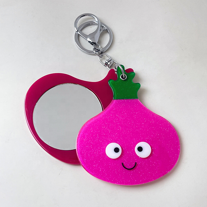 Porte-clés miroir personnalisé en forme de fruit mignon, pendentif pour sac, breloque de voiture, accessoire portable en acétate, vente en gros