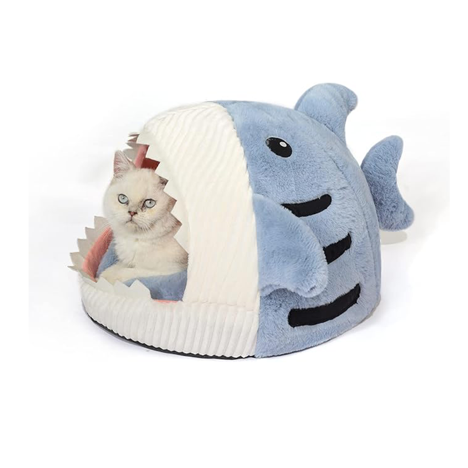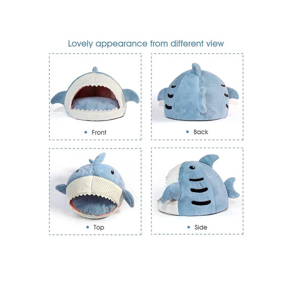 Packaging Details:Grotte de chat mignonne douce et chaude en forme de requin avec oreiller lavable amovible pour chat et chiot chien: emballage individuel dans un sac en polyéthylène, un sac d'opp, une boîte d'affichage ou par client personnalisé