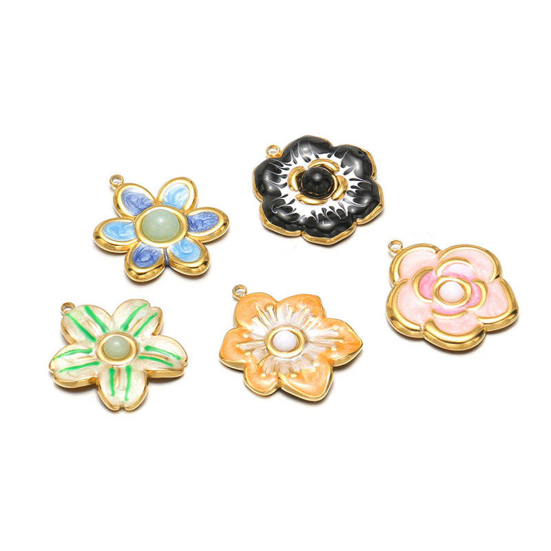 Pendentifs et breloques personnalisés en acier inoxydable 316L plaqué or 14K 18K PVD pour la création de bijoux, breloques fleurs pour bracelets.