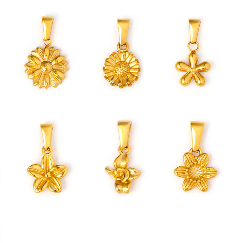 Pendentifs et breloques personnalisés en acier inoxydable 316L plaqué or 14K 18K PVD pour la création de bijoux, breloques fleurs pour bracelets.