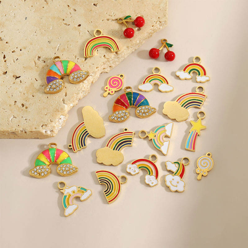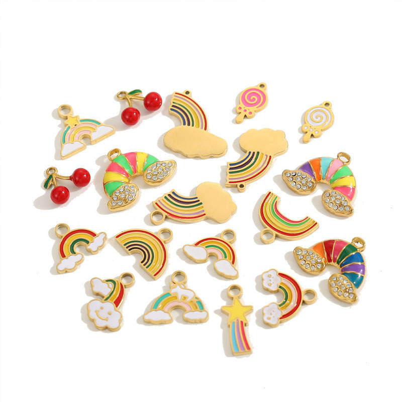 Bracelet en acier inoxydable 316L plaqué or PVD 14k 18k personnalisé DIY, breloques arc-en-ciel Kawaii en gros pour bracelet et collier