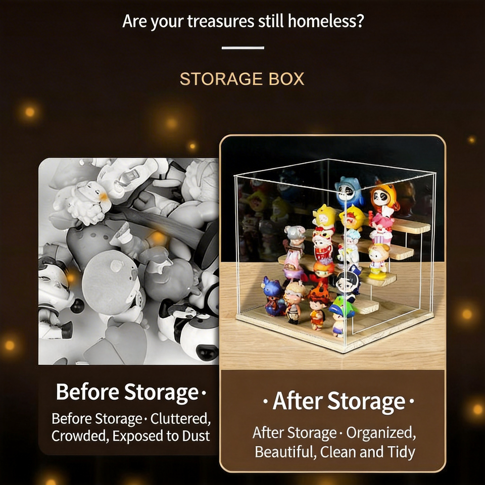 Vitrine de présentation moderne en ABS avec base en bois, anti-poussière, à assembler soi-même, pour figurines et collections de jouets