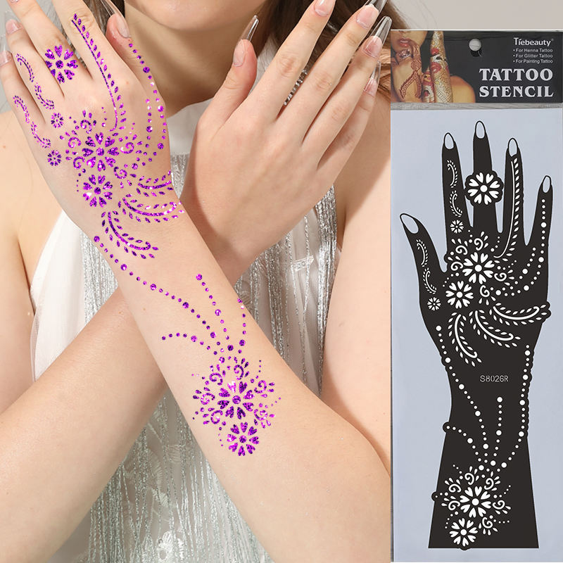 Pochoir indien Mehndi réutilisable bricolage personnalisé OEM autocollants de tatouage au henné pour main et poignet pour le corps amélioration temporaire de la beauté