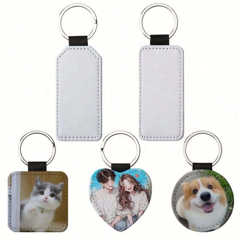 Porte-clés vierge personnalisable pour sublimation, transfert thermique, impression double face, en cuir PU, pour sublimation sur les deux côtés
