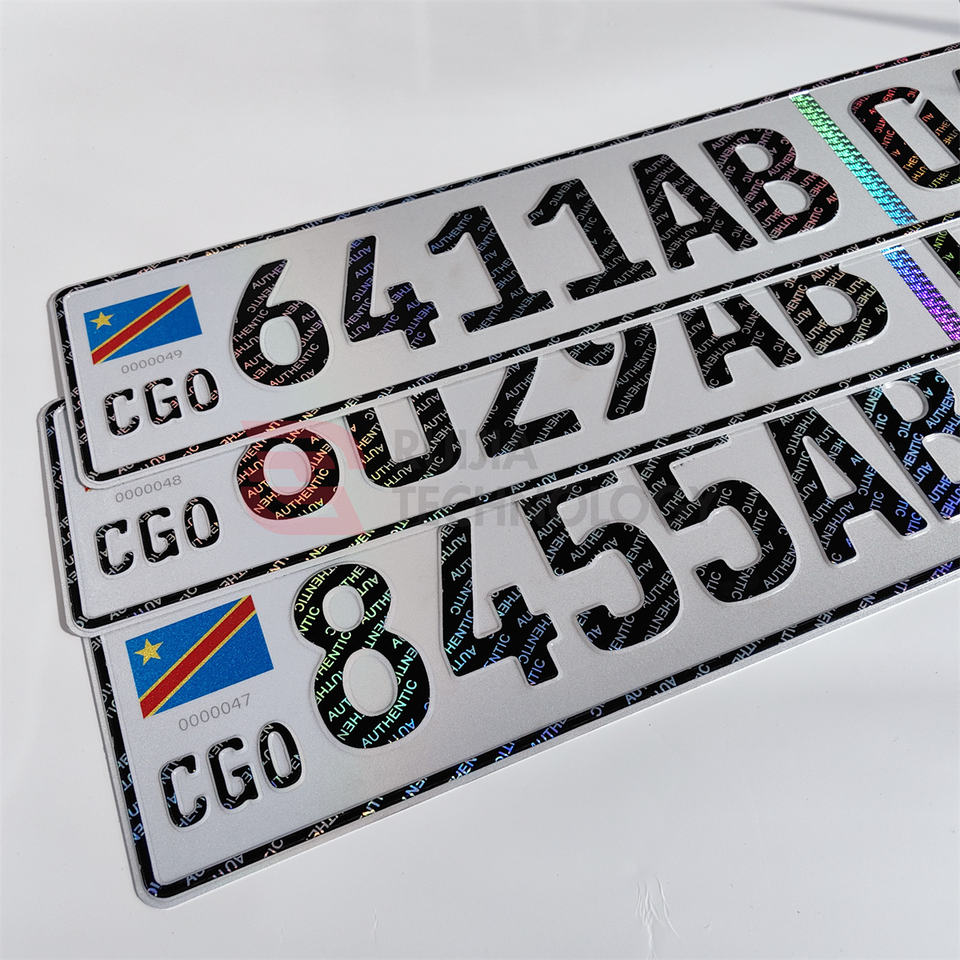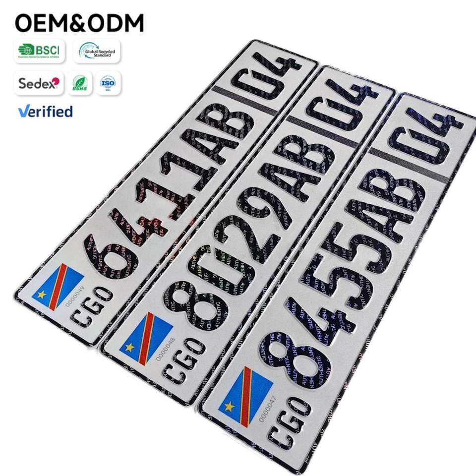 Plaque d'immatriculation personnalisée anti-contrefaçon standard DRC, échantillon gratuit, faible MOQ pour plaque d'immatriculation de véhicule personnalisée