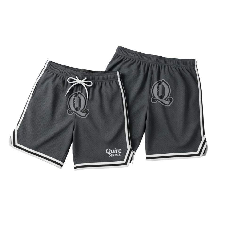 Short de basketball gris foncé personnalisé Short d'entraînement sportif en polyester à mailles unies avec bordure blanche et cordon de serrage à la taille
