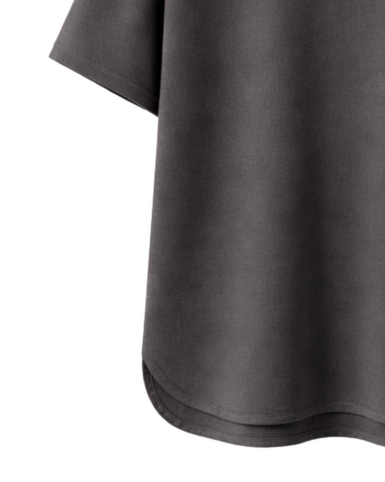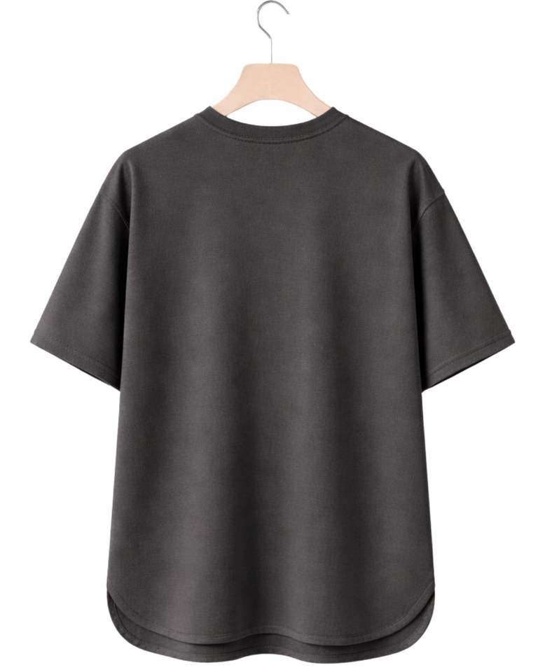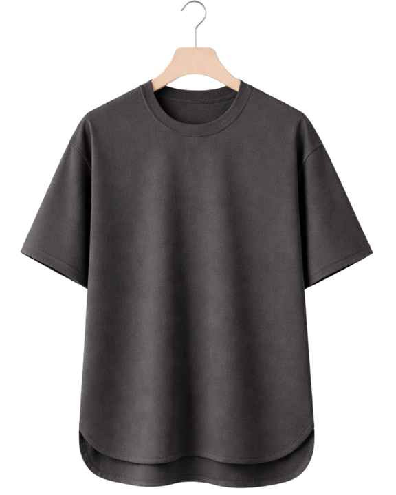 T-shirt surdimensionné gris foncé personnalisé pour homme, ourlet incurvé, épaules tombantes, col rond, en coton uni, streetwear, t-shirt d'été