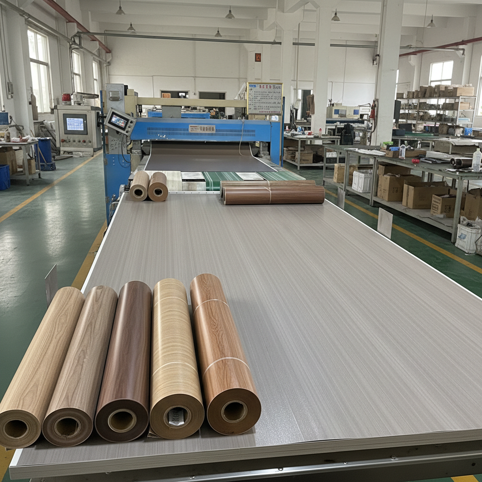 Film PVC décoratif personnalisé en rouleau, prix usine, membrane sous vide pour porte, film vinyle en stock pour armoire, film PVC décoratif avec logo