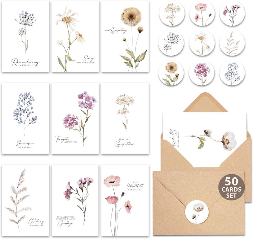 Cartes de sympathie délicates personnalisées avec enveloppes et autocollants-Ensemble parfait en vrac pour exprimer vos condoléances