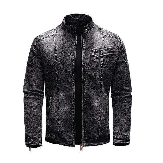 Custom Denim Batik Acid Wash Distressed Patchwork Print Zip-Up Hoodie with High Street Style Patches Denim Jackets for men
