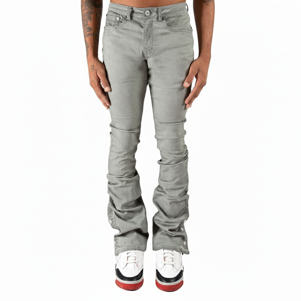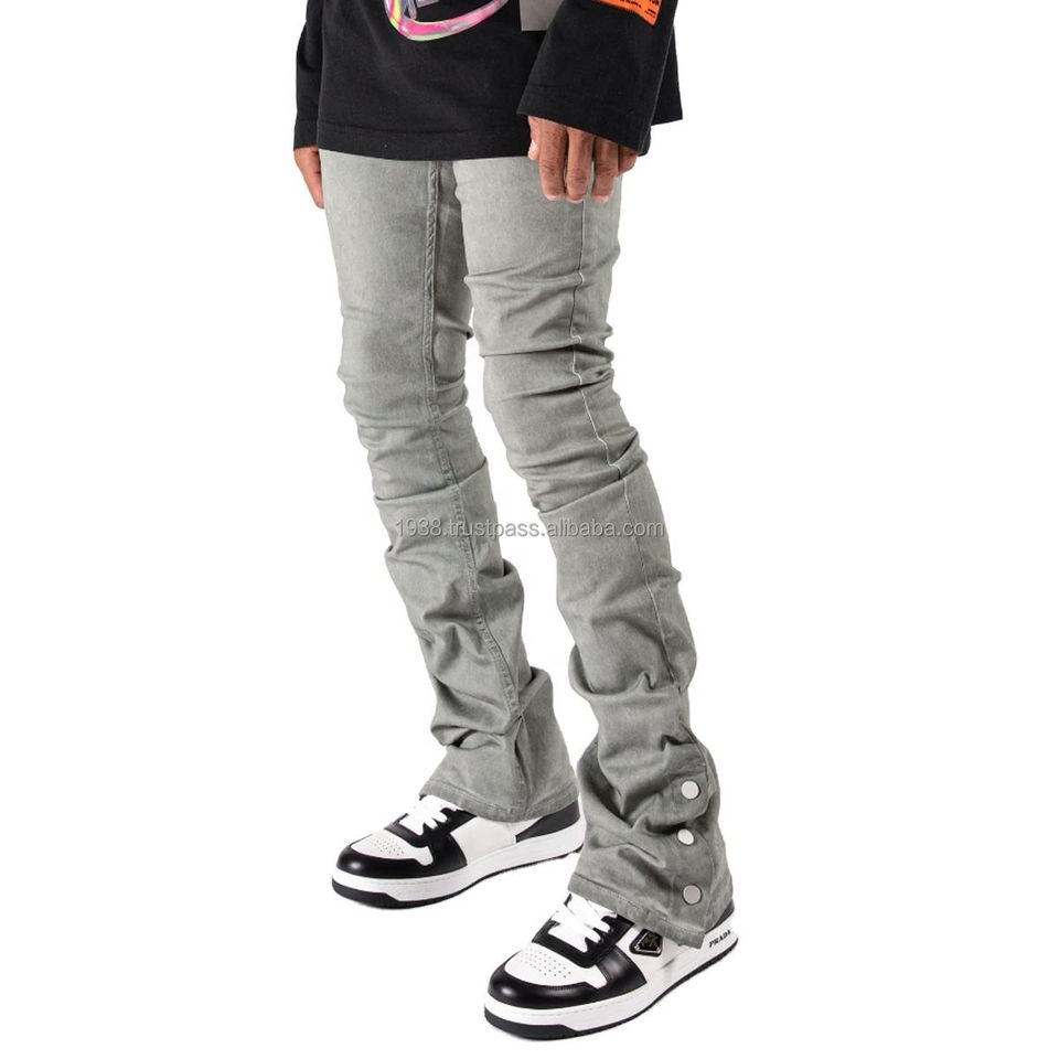 Jeans de marque de luxe en denim évasé à bouton pression pantalon évasé de style homme jeans skinny empilés en détresse