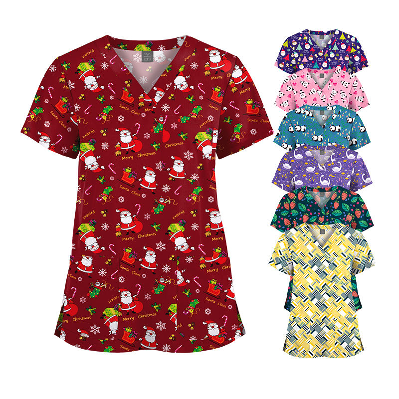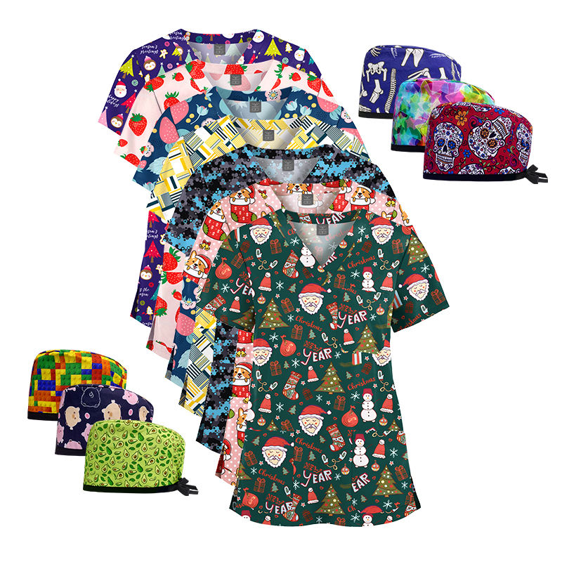 Haut de gommage imprimé dentiste personnalisé nouveau design uniforme imprimé costumes de gommage femmes bonne qualité imprimé hauts de gommage ensemble d'infirmière