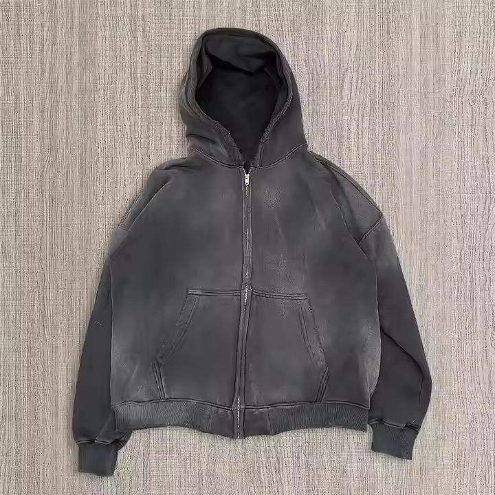 Conception personnalisée 100% coton pleine fermeture éclair rue sweats à capuche zippés soleil vente en gros Logo personnalisé sweats à capuche brodés pour hommes
