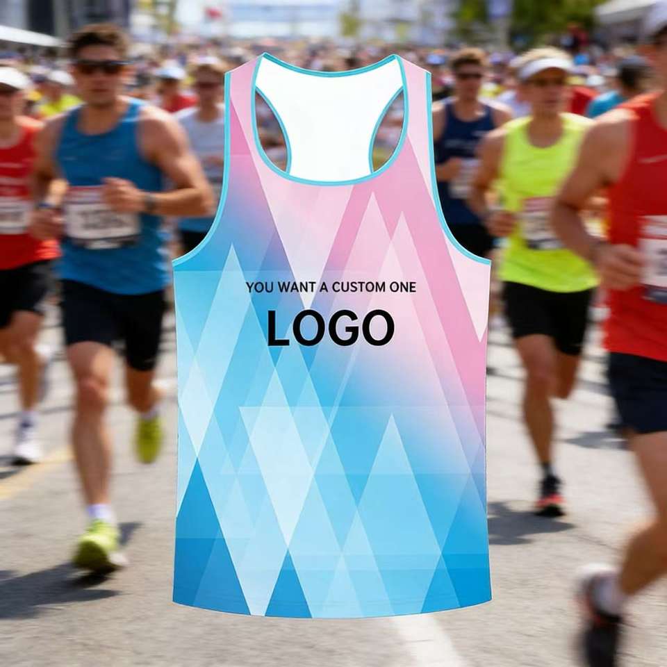 Débardeur de course léger en polyester 100 % personnalisé, sans manches, à séchage rapide, pour marathon