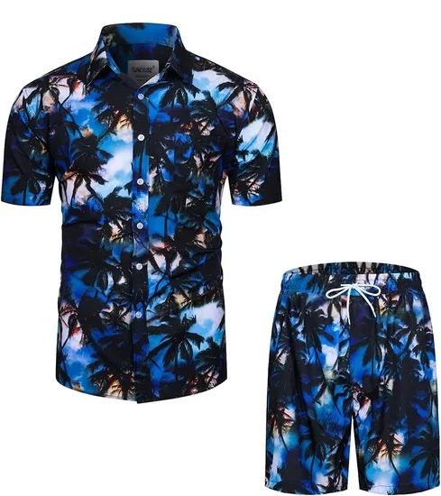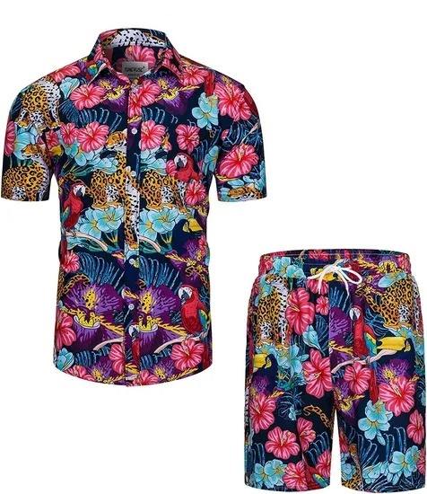Conception personnalisée 2025 hommes plage vacances d'été sublimation imprimé P0lyester graphique imprimé fleuri chemise et ensemble short