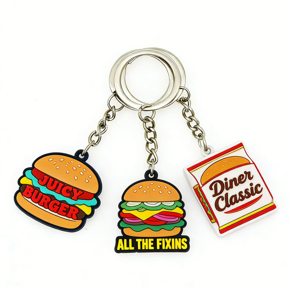 Porte-clés en caoutchouc personnalisé série 2D, pendentif de sac en PVC souple durable, mini décoration, cadeau promotionnel