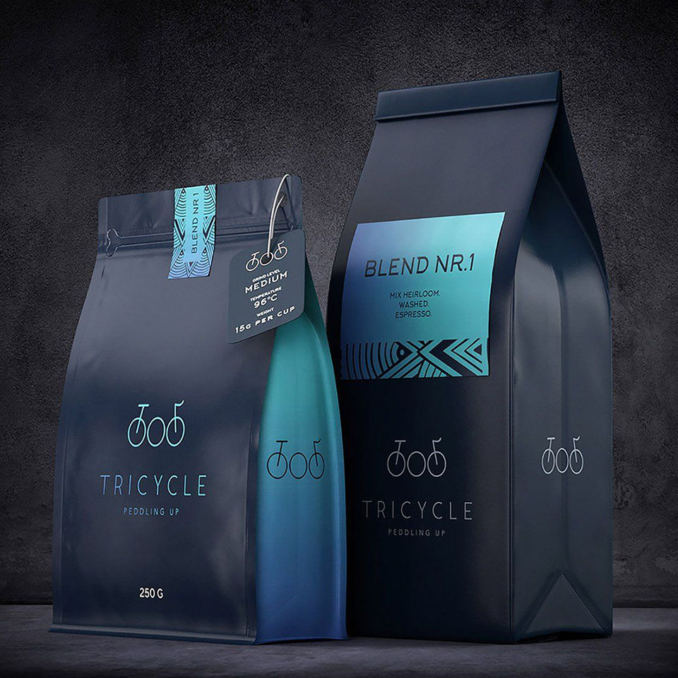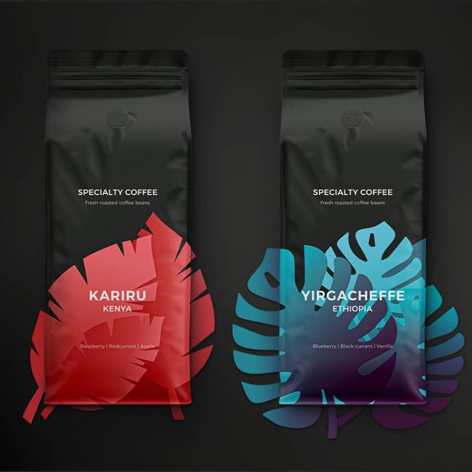 Conception personnalisée 340g 500g couleur hermétique hesian scellé noir debout papier kraft fond plat sac de café avec valve à air