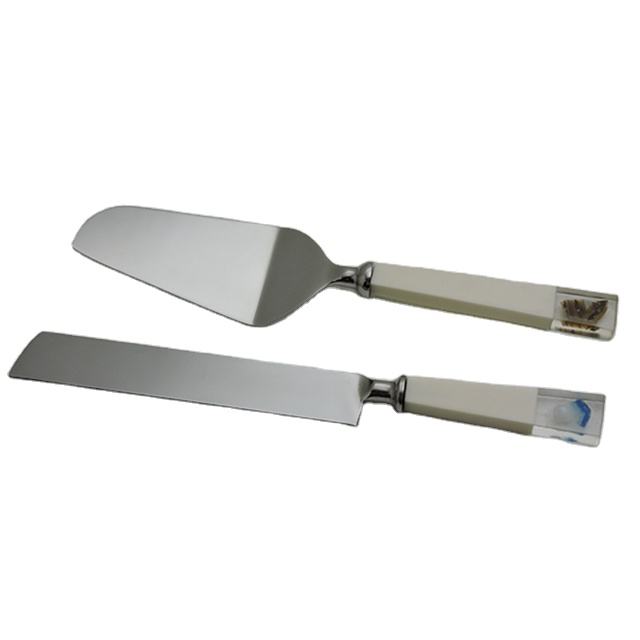 Pelle à gâteau en bois et en résine et en acier inoxydable, pour mariage ou anniversaire, soirée, couteau à gâteau