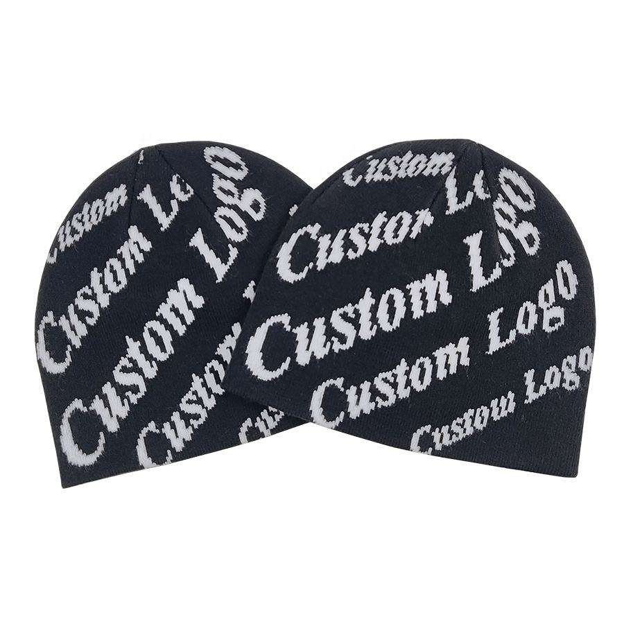 Bonnets d'hiver en tricot acrylique à logo jacquard sur toute la surface, design personnalisé
