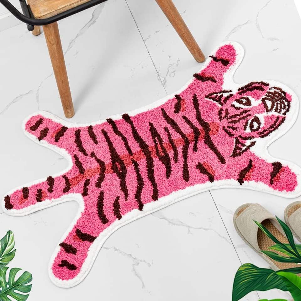 Conception personnalisée Tapis de chambre d'enfant en microfibre amusant en forme d'animal Tapis de bain tigre touffeté en peluche extra douce