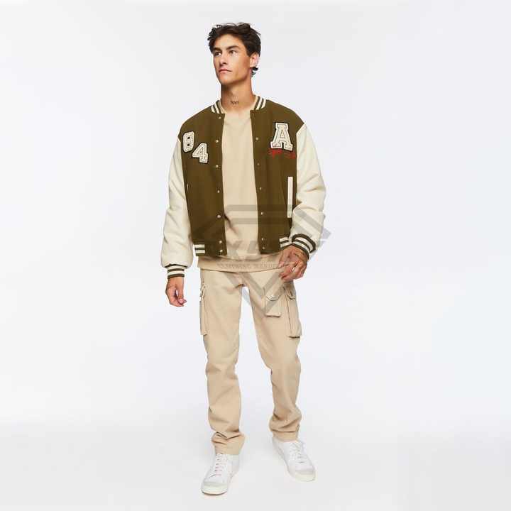 Blouson universitaire homme élégant automne-hiver, design personnalisé, avec patch brodé en chenille sur le devant, 2026