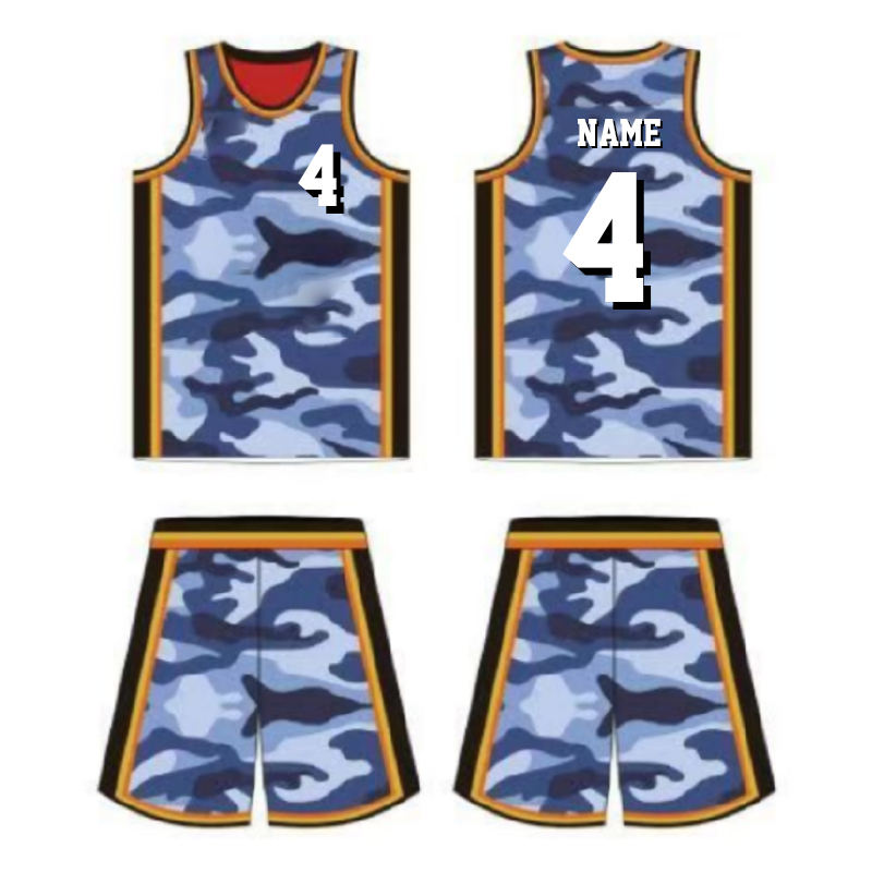 Maillot de basket-ball personnalisé double face pour enfants, en maille respirante, camouflage, taille enfant, polyester, séchage rapide