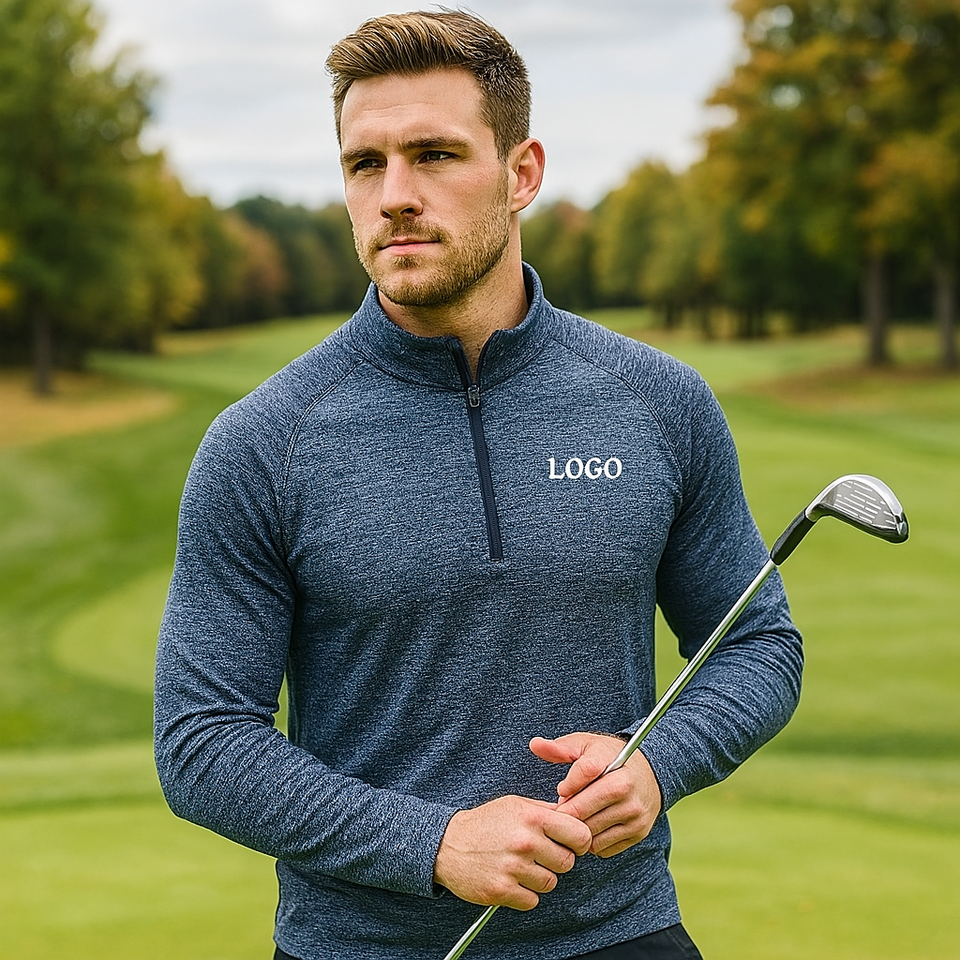 Design personnalisé vierge tricot léger sport hommes quart Zip Performance Pullover Golf Sweatshirt